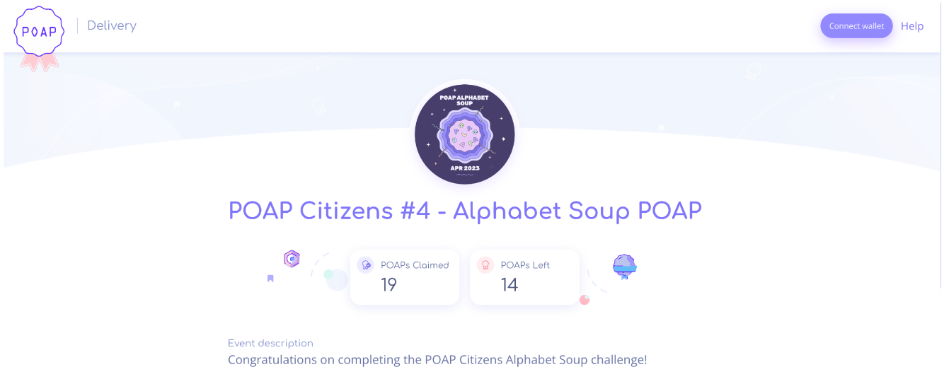 Example: Fio requests crypto donations to help fund her nonprofit initiative. At the end of the fundraising, she gathers the wallet addresses that donated and sets up a POAP Delivery so she can gift those wallets a “proof of donation” POAP.