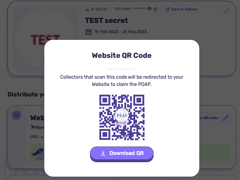 A “classic” POAP distribution method; create a website that anyone can visit, input their wallet or email address, and mint their POAP. It is common for issuers to print a QR code that directs to this website, allowing collectors to scan it with their phone to mint their POAP.