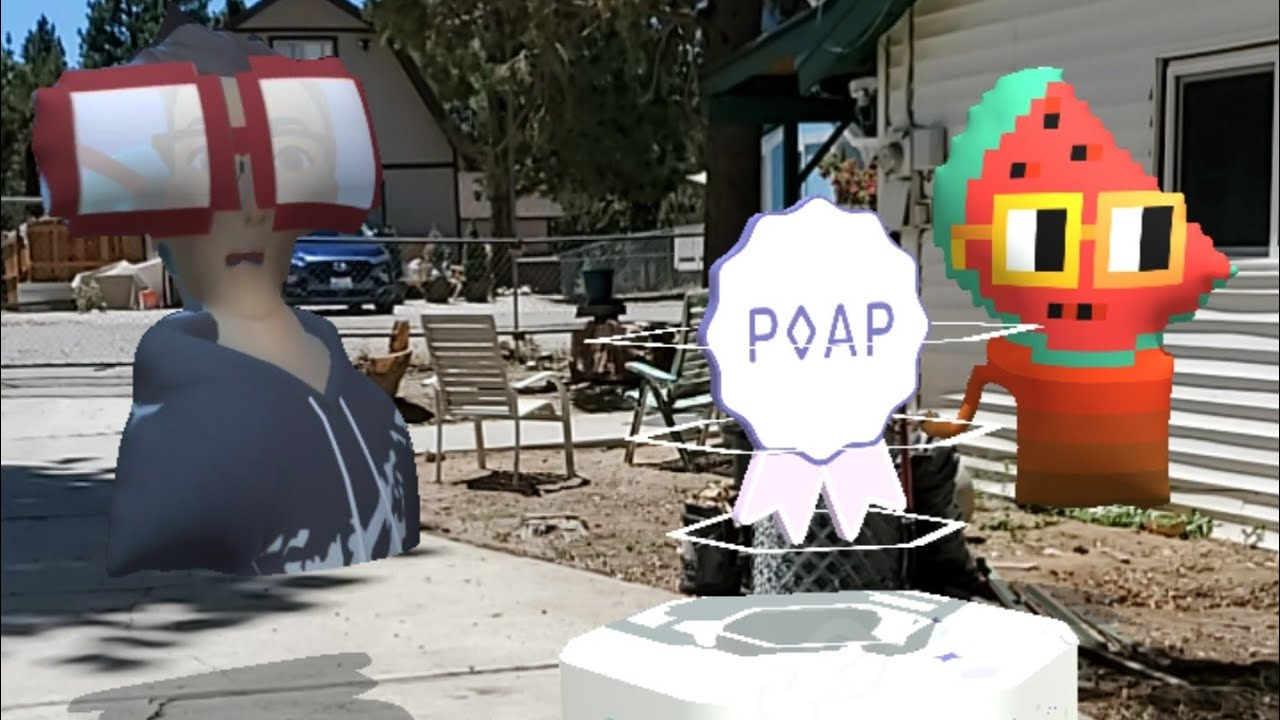 Of course, you can drop POAPs in the metaverse, or in the real world. But how about combining the two? With technology such as the OVER app, users can look through their phone to see a digital layer overlaid with the physical; part of this digital layer can be an AR POAP Dispenser that will mint a POAP when it is digitally “tapped.”
