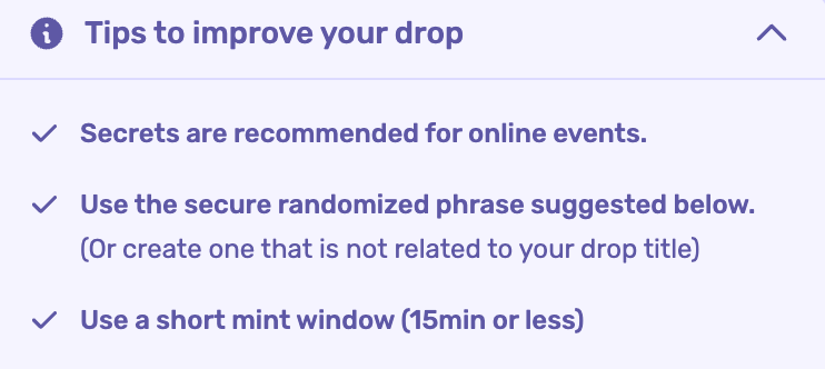 So how do you get there? For small drops among people you know well, texting a unique mint link to each person might be perfectly secure and not too time-intensive. However, as your drop size grows, more streamlined methods become necessary.